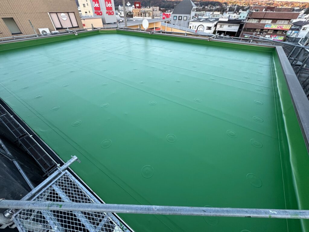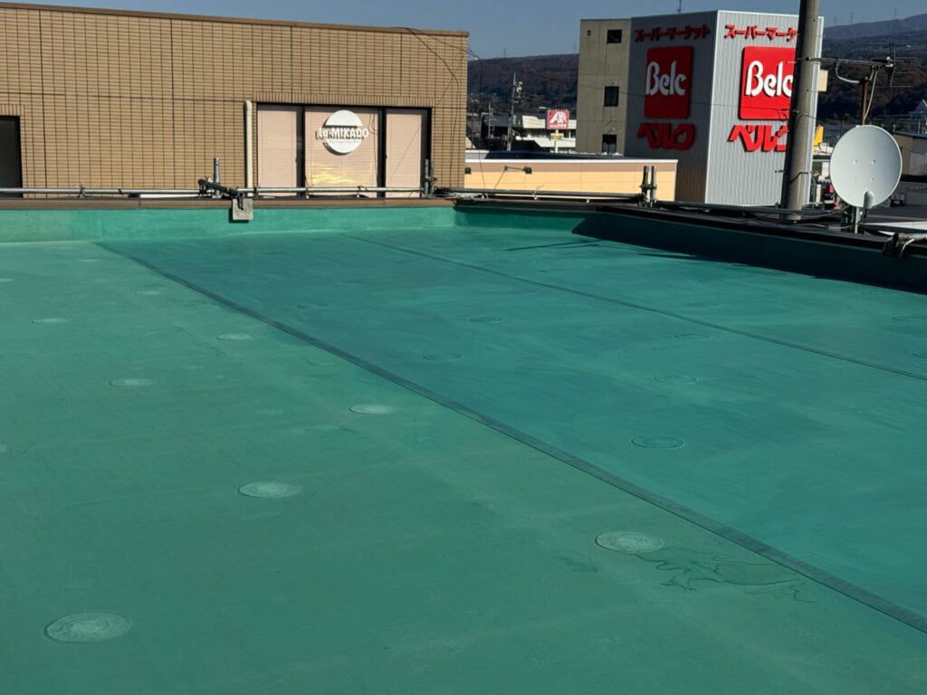 屋上の防水層は、建物内部への雨水の浸入を防ぐ最後の砦。紫外線や熱の影響を常に受けているため、定期的なメンテナンスが必須ですよ👆